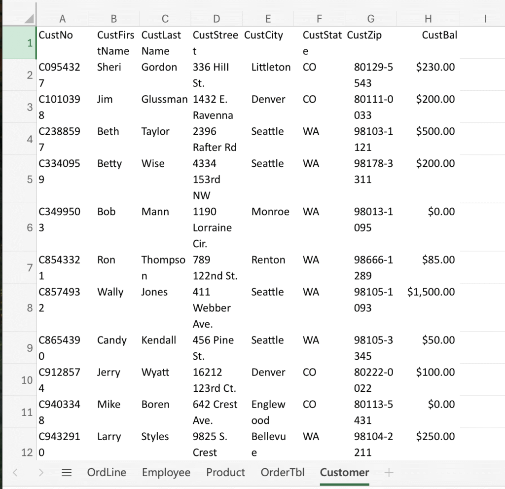 This project uses a structured Order Database containing multiple relational tables (Customer, Employee, Product, OrderTbl, and OrdLine).